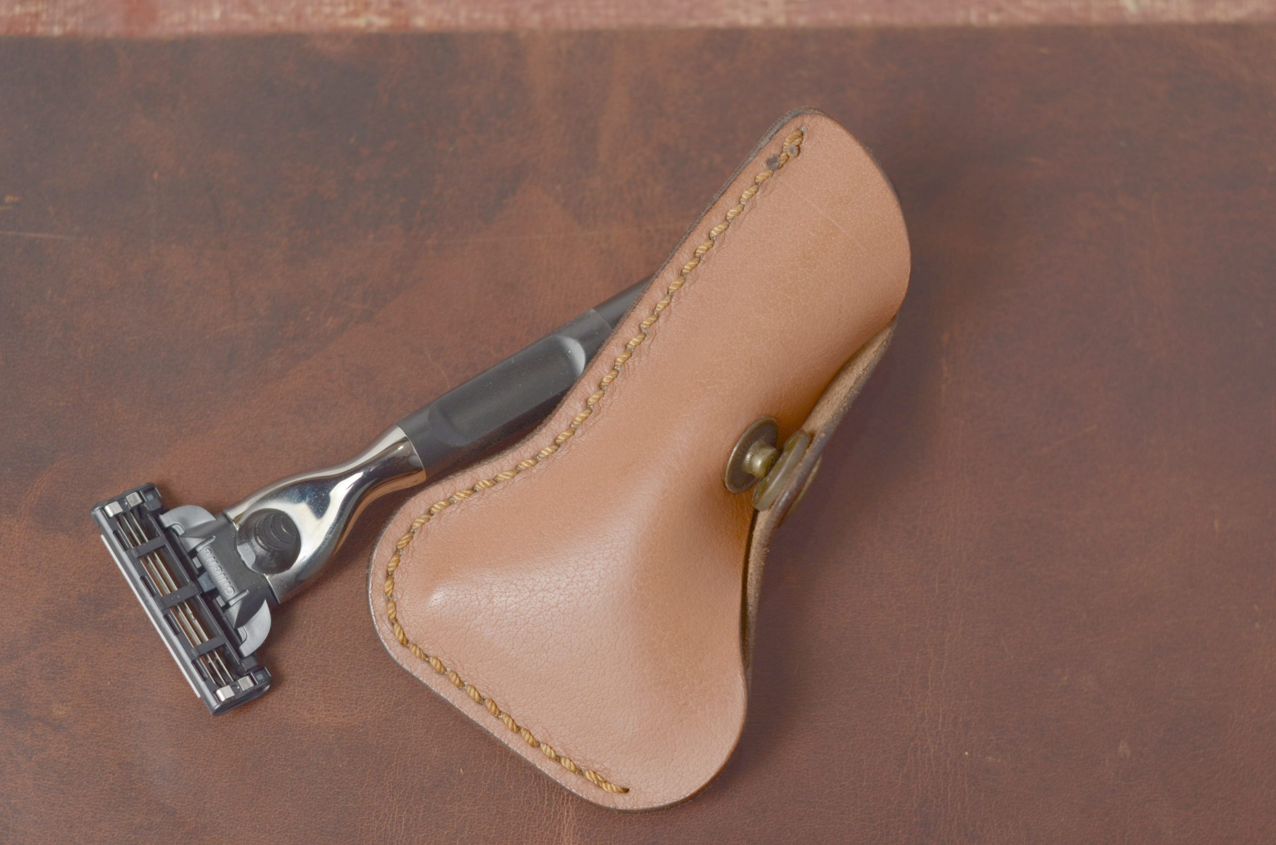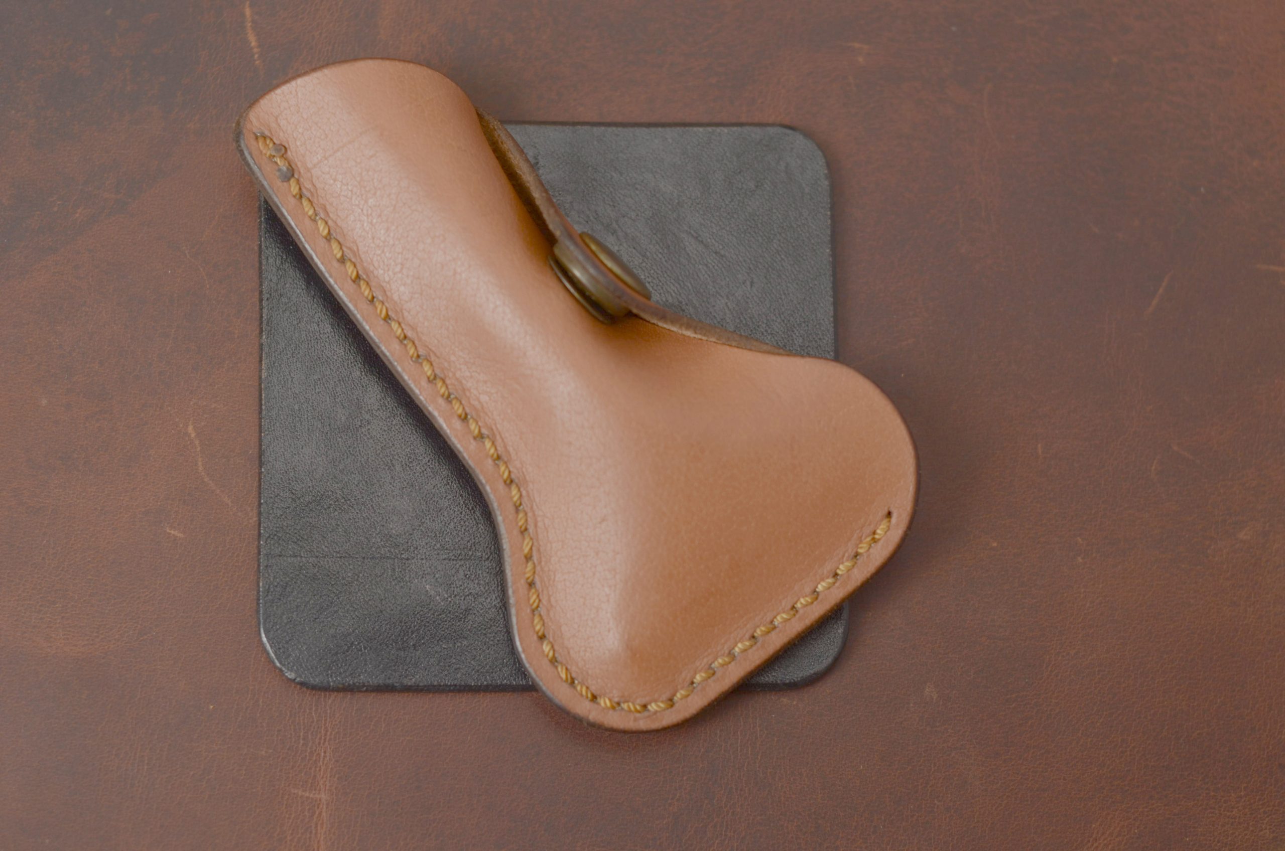 A razor sheath. Holds coins. Hand punched & sewn with burnished & waxed edges.Natural vegetable tanned leather.Handmade in India.